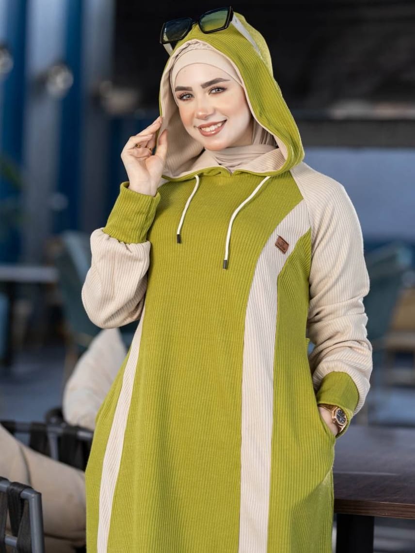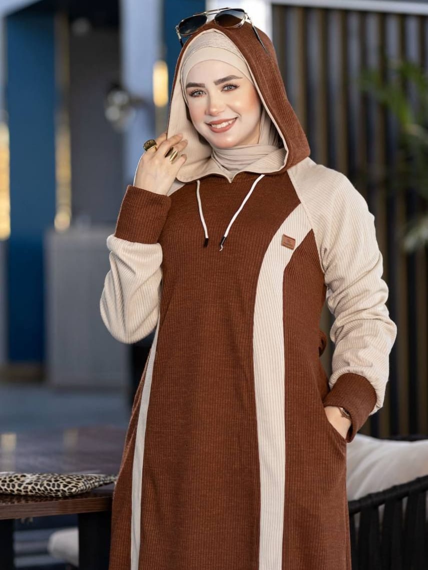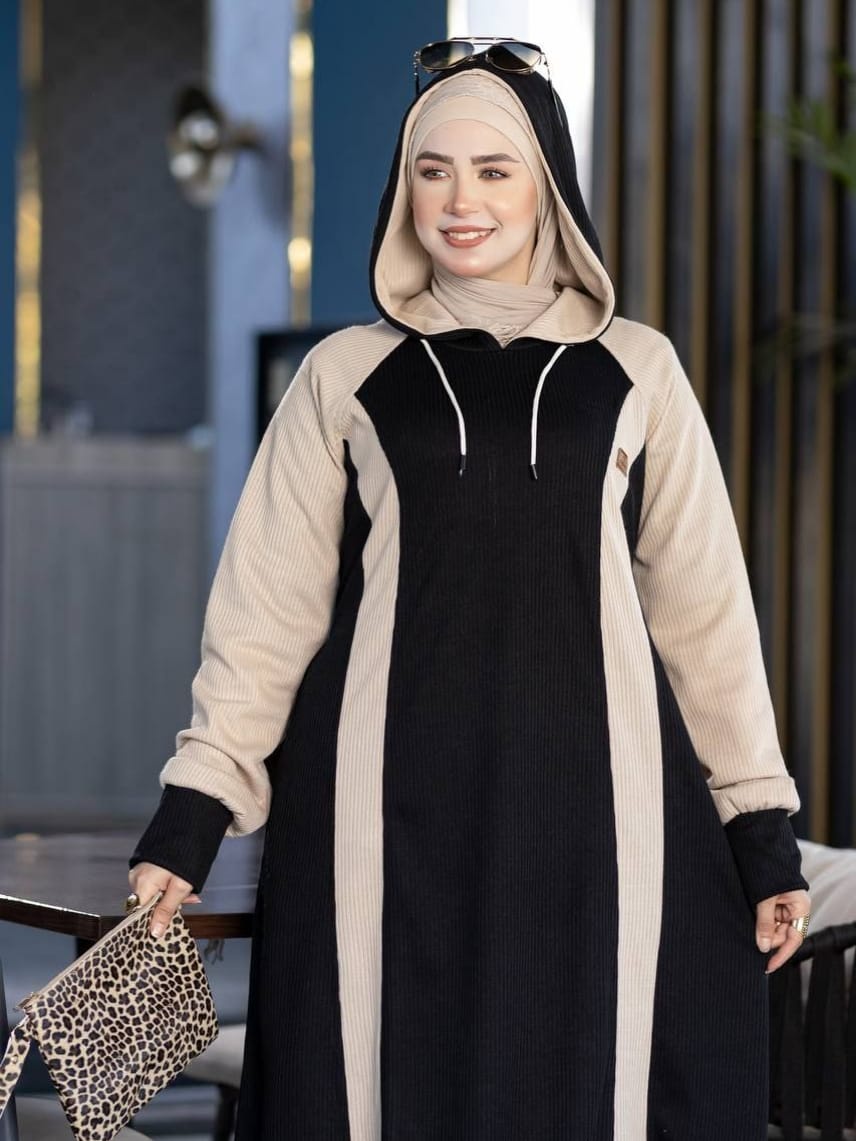 دريس ريب بكابيشو من روزا: قطعة واحدة تجمع بين راحة الهودي وأناقة النسيج المضلع (الريب). قَصّة عصرية ومرنة تحدد القوام وتمنحك الدفء والجاذبية. مثالي لإطلالة يومية سهلة ومريحة.