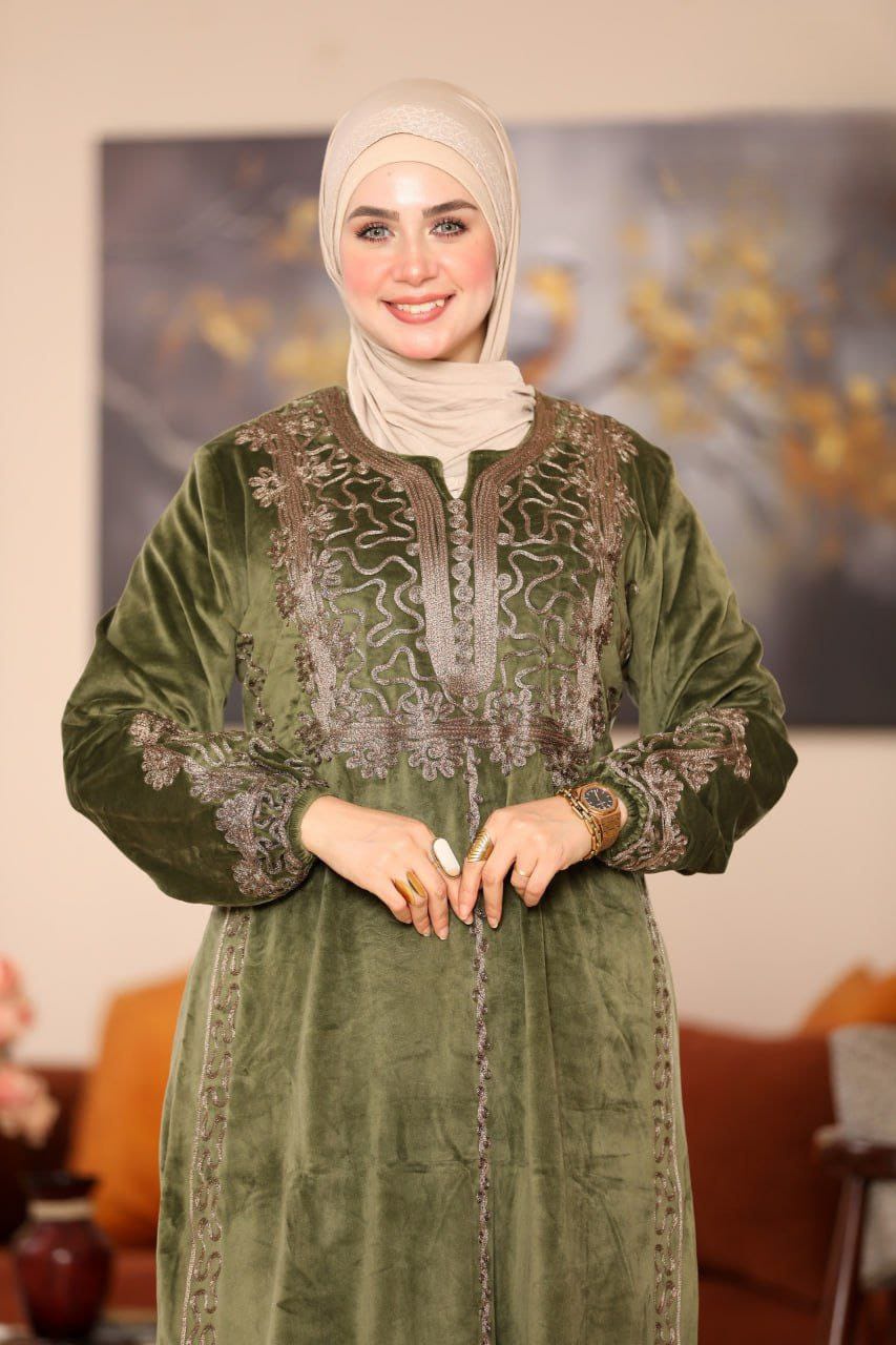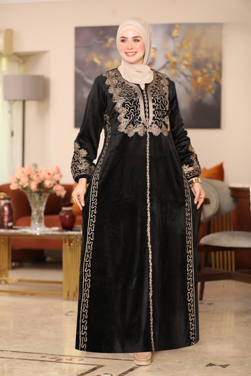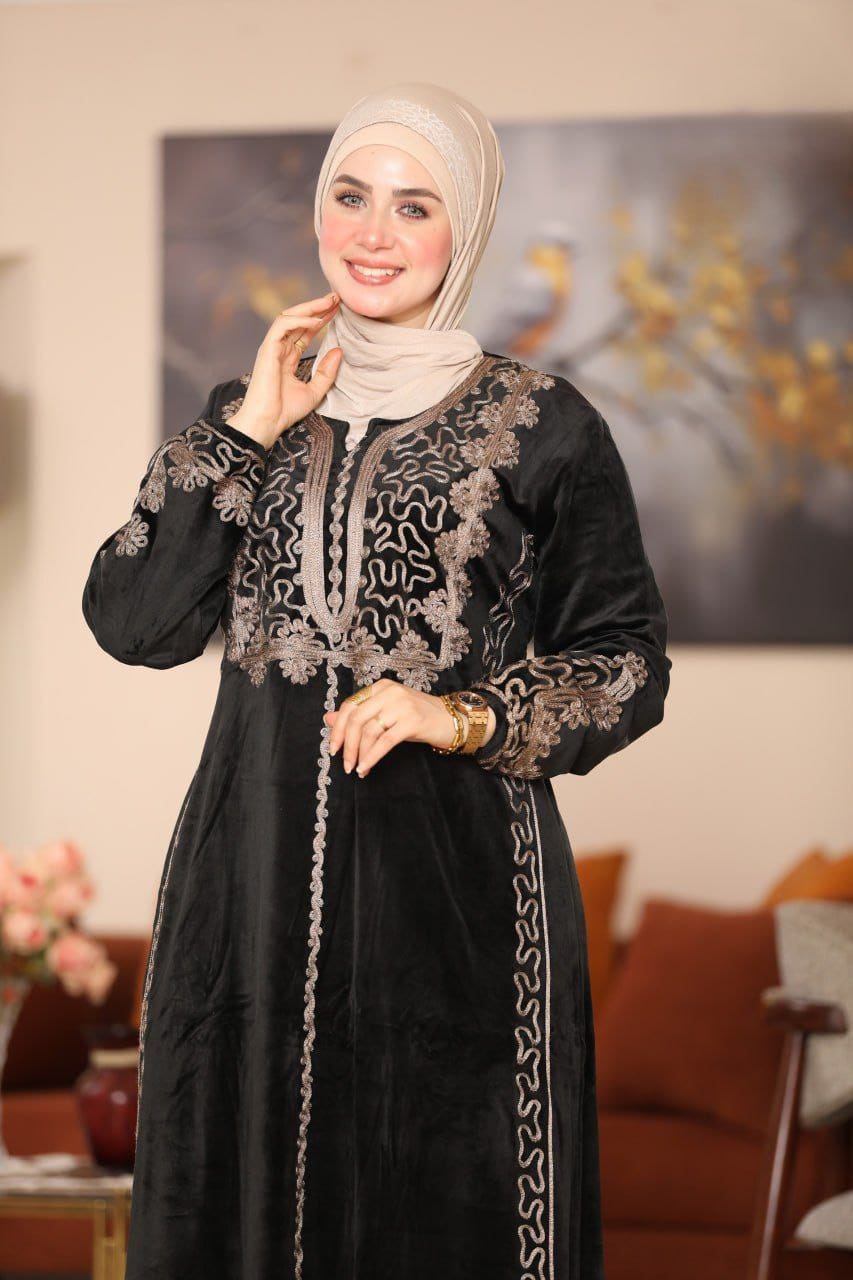 👑 عباية قطيفة "هايدي": تطريز يدوي وفخامة شتوية !