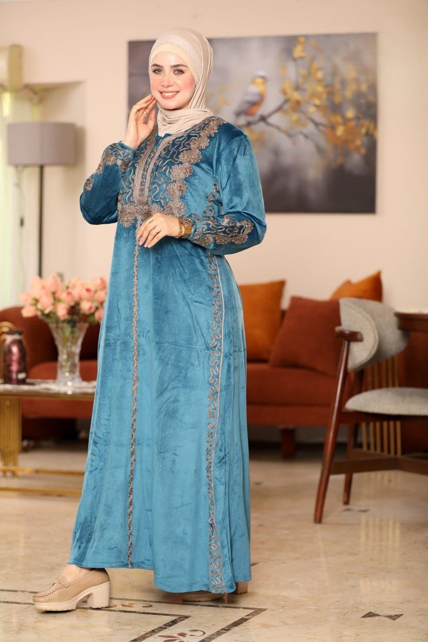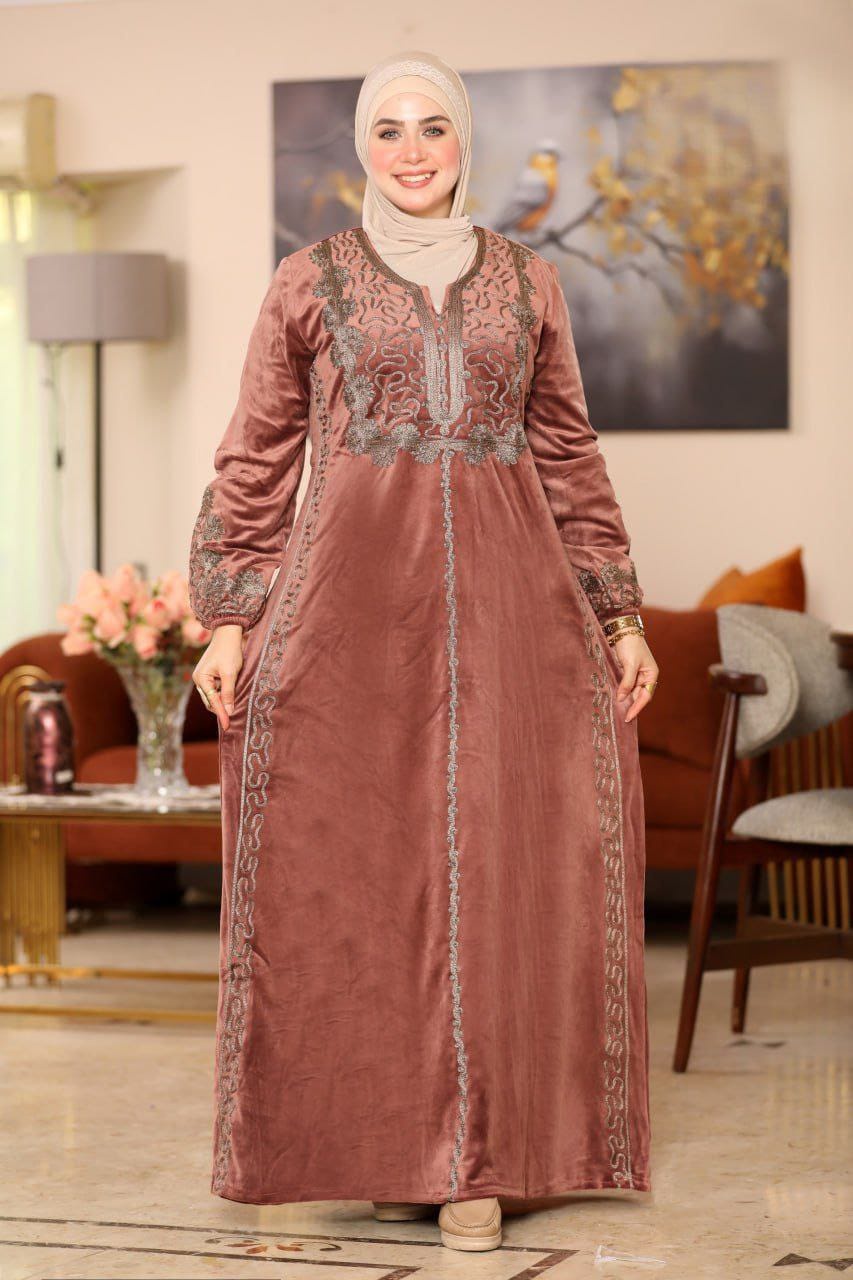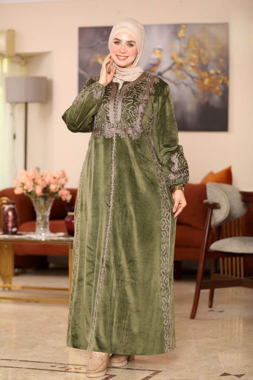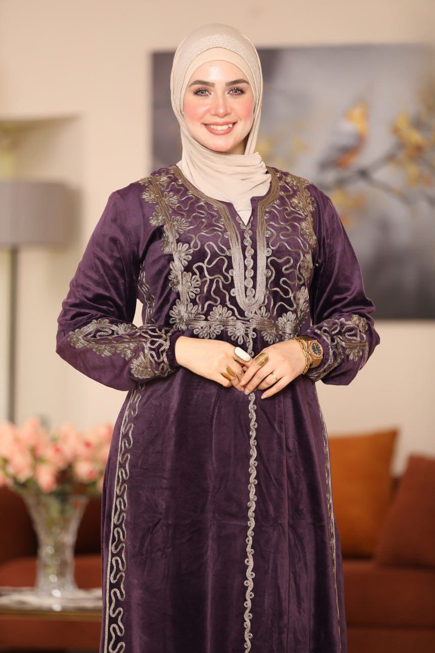 👑 عباية قطيفة "هايدي": تطريز يدوي وفخامة شتوية !