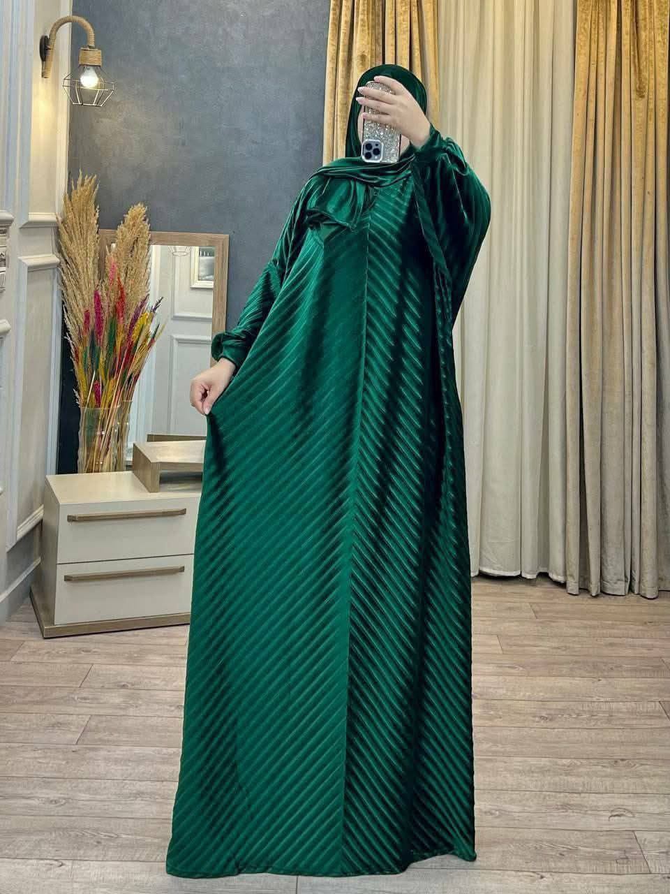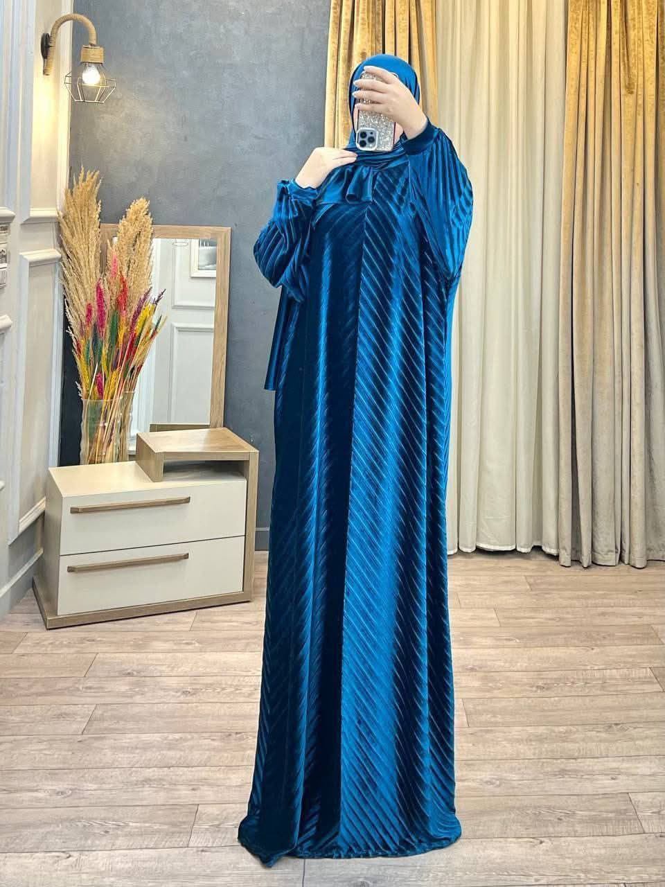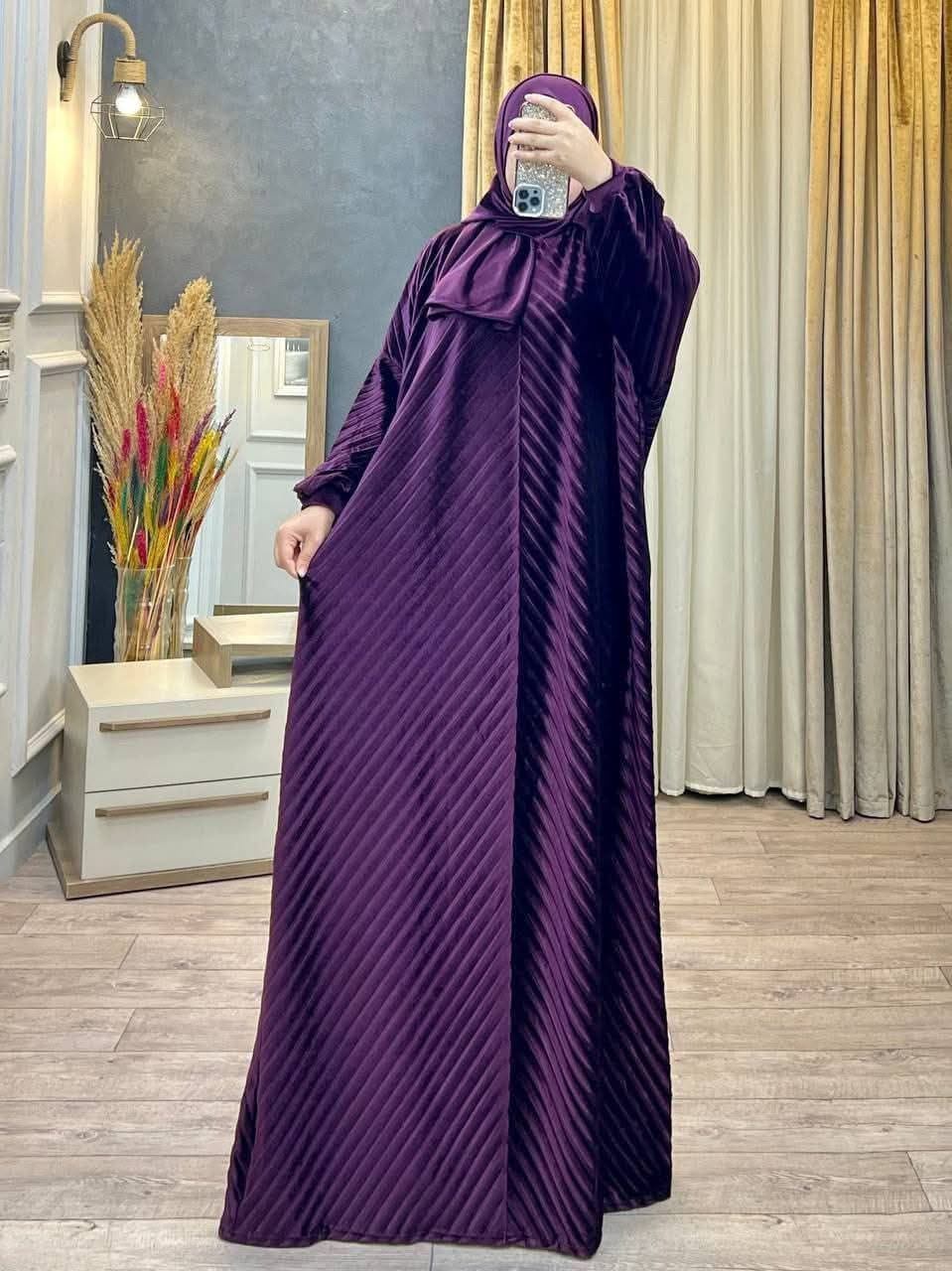 اقتني الآن إسدال القطيفة البليسيه، الخيار الأمثل للأناقة والراحة. مصنوع من قطيفة فرنسية ناعمة وفاخرة، بتصميم بليسيه (كسرات) أنيق ومحتشم. مثالي كـ عباية استقبال أو طقم صلاة متكامل. يأتي بـ مقاس فري سايز ومرفق بـ طرحة بنفس الخامة .