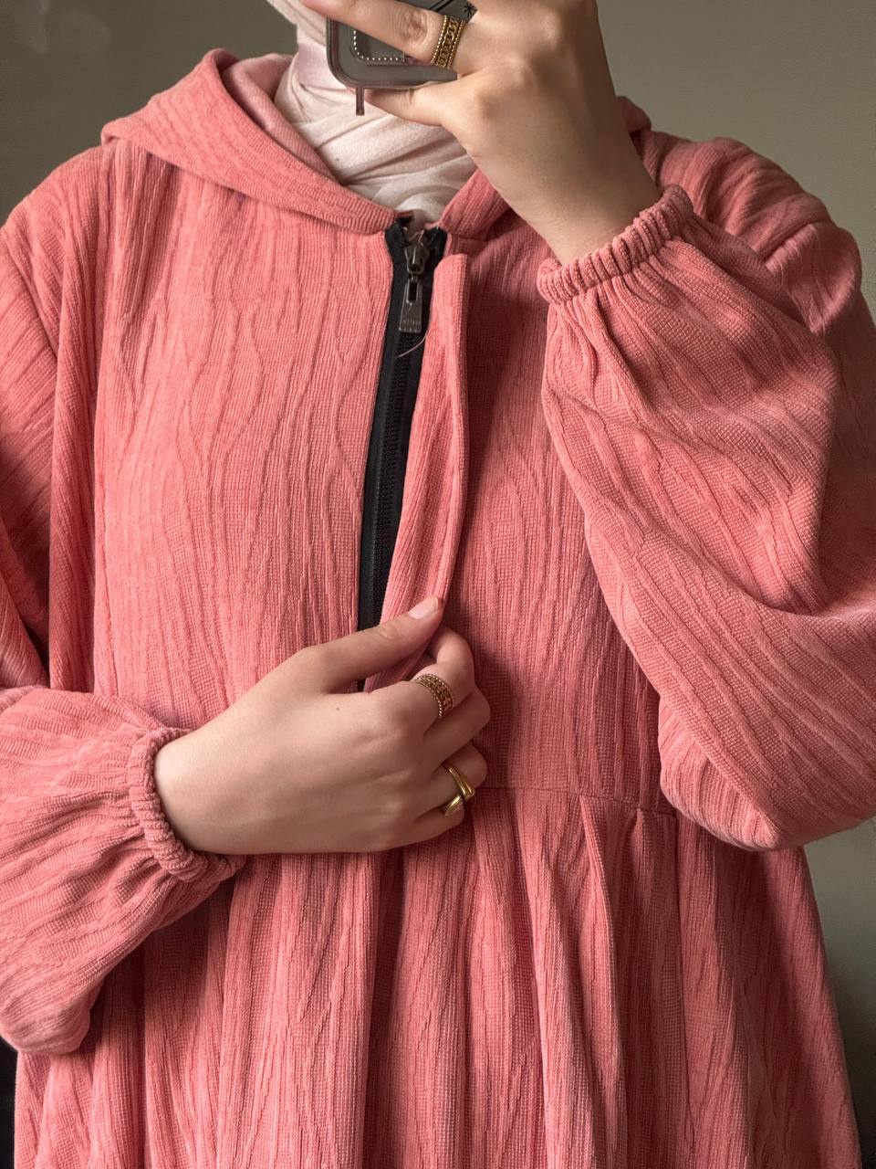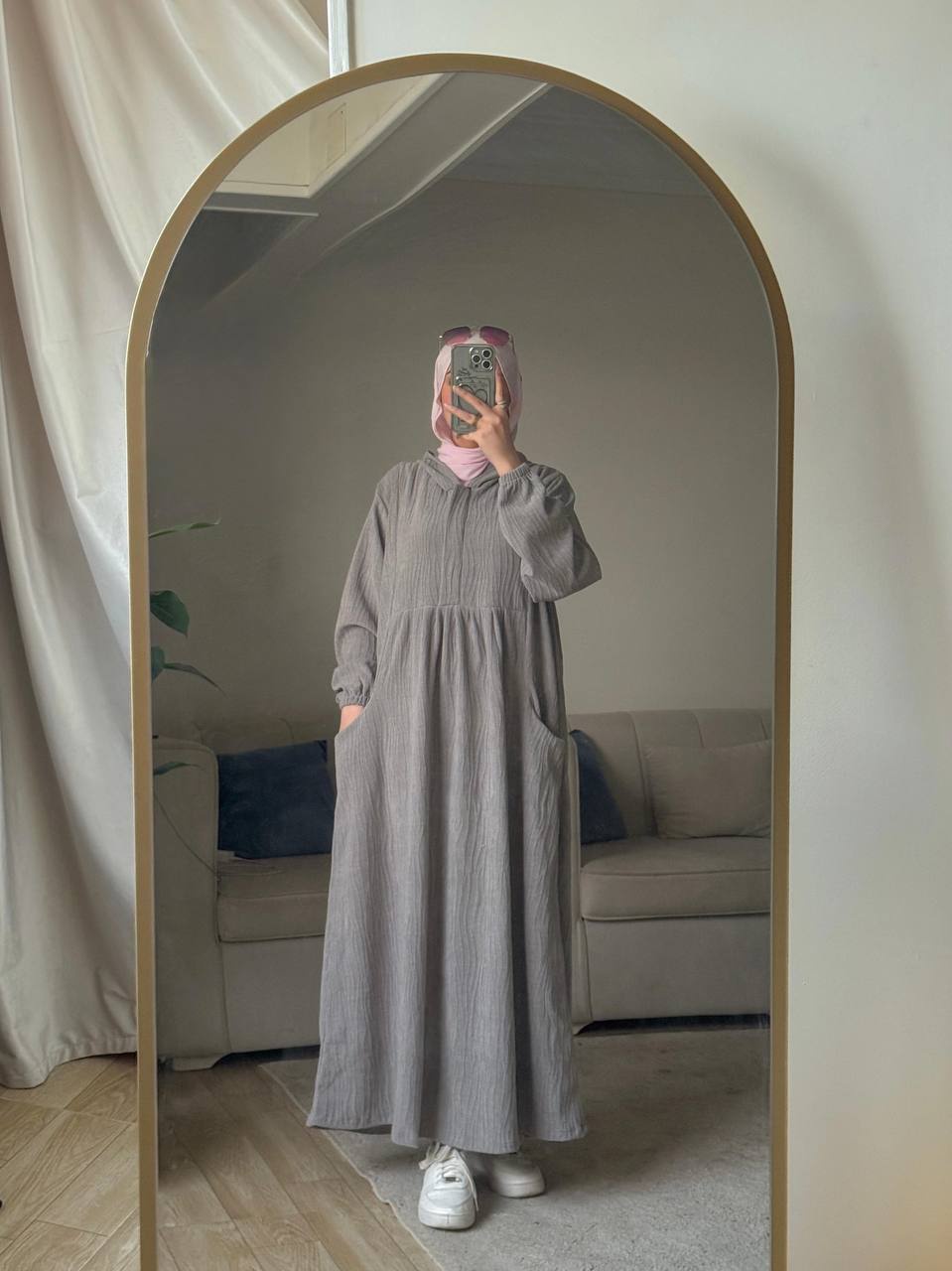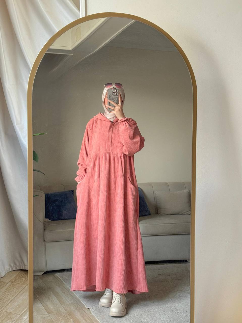 دريس أساسي فاخر. يتميز بنسيج الجاكار التركي المستورد عالي الجودة وملمس الشانيل الراقي. مُصمم بذكاء مع سحّاب سحّابي مخفي على الصدر ليخدم كفستان أنيق ويُستخدم بسهولة للإرضاع. فخامة يومية عملية