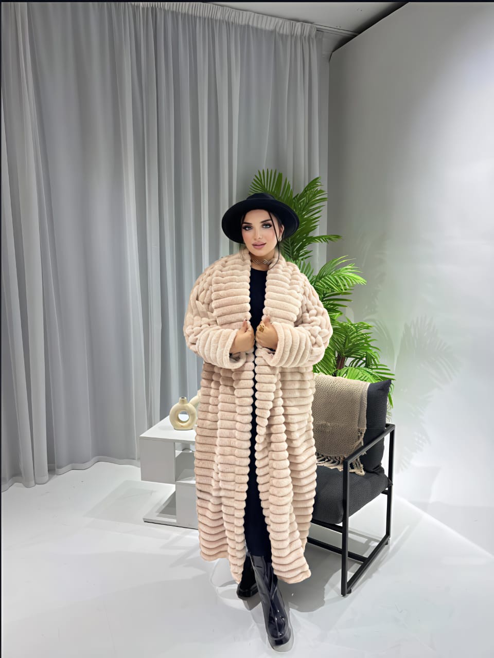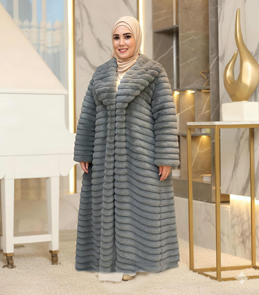 معطف فرو شتوي ( Cardigan Coat ) طويل بـتصميم مموج (مضلع) عصري وجذاب.