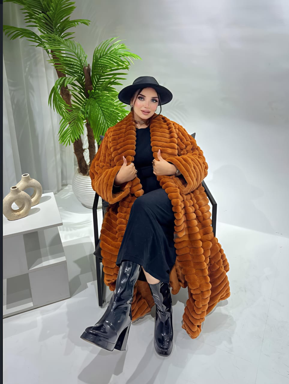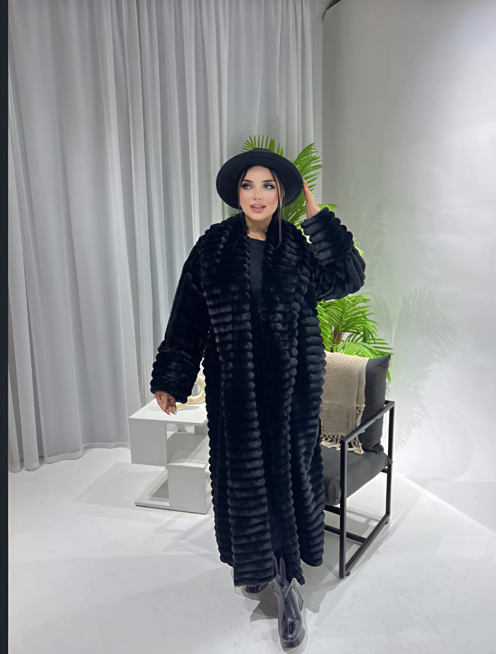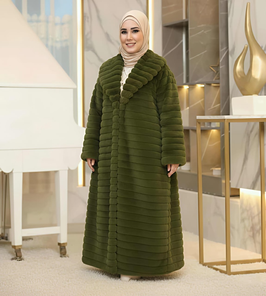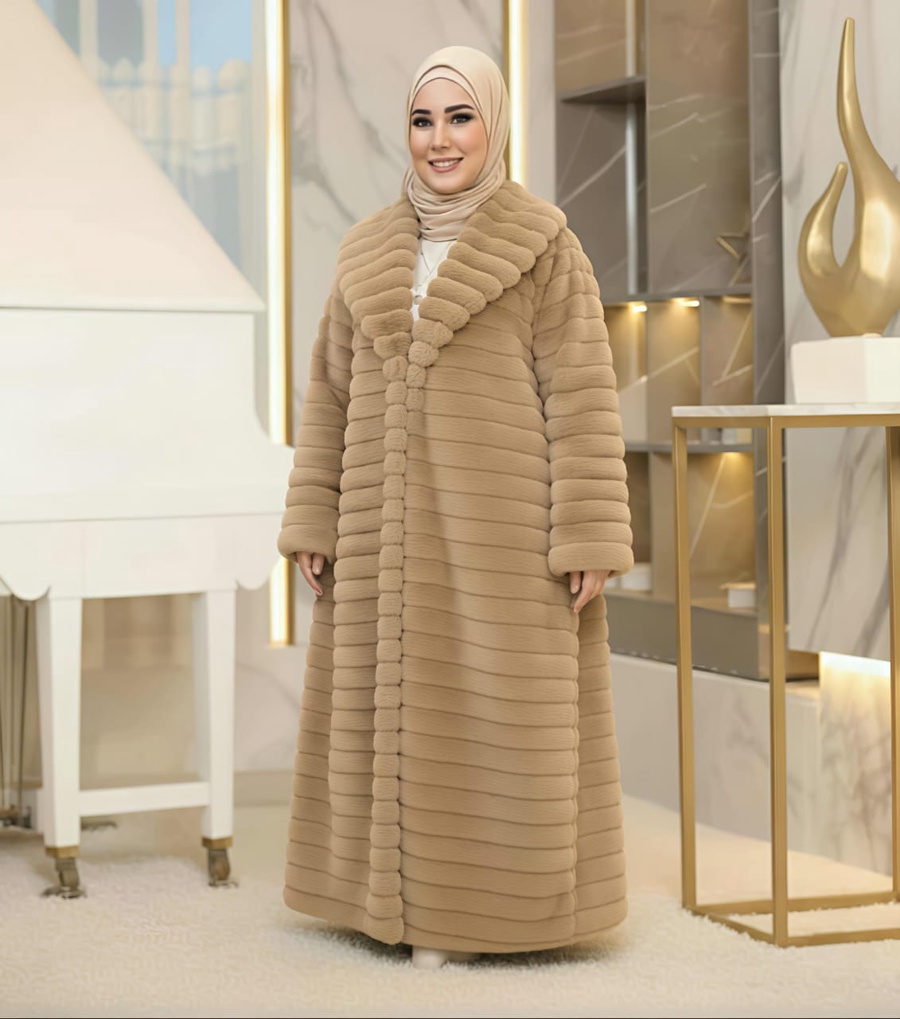 الخامة: فرو صناعي فاخر (Fur Jacket)، يوفر دفء استثنائي لشهور الشتاء.