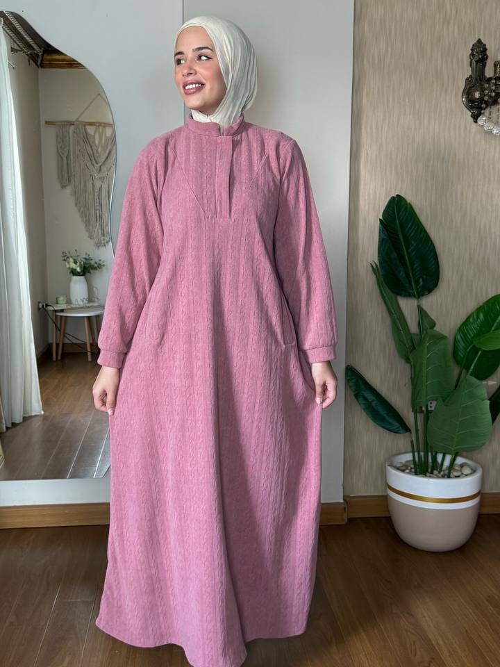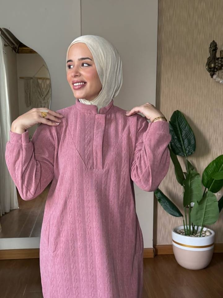 فستان روزا الشانيل التركي الفاخر: أناقة استثمارية لا مثيل لها. مصنوع من خامة الشانيل التركية المستوردة ذات الملمس المخملي الناعم والنسيج الغني. يضمن لكِ جودة فائقة ودفئاً راقياً. قطعة مثالية لإطلالاتكِ الفخمة والمناسبات الأنيقة
