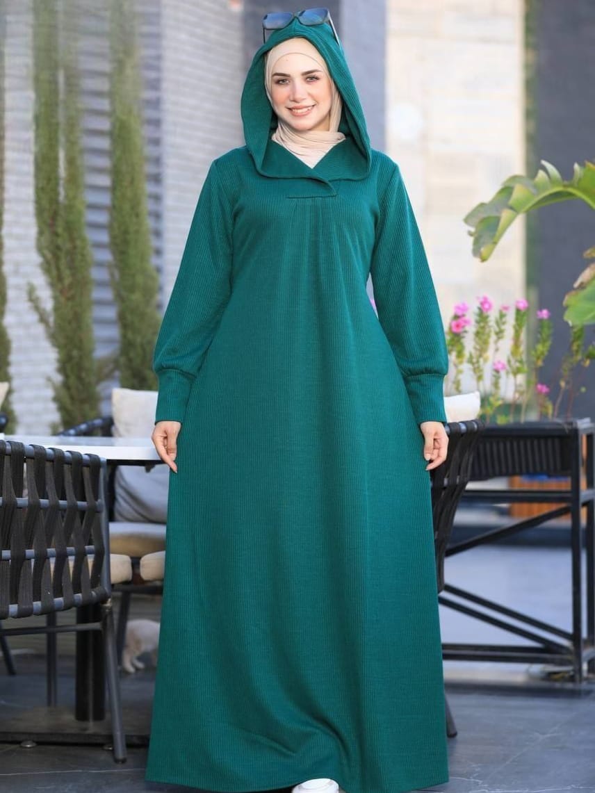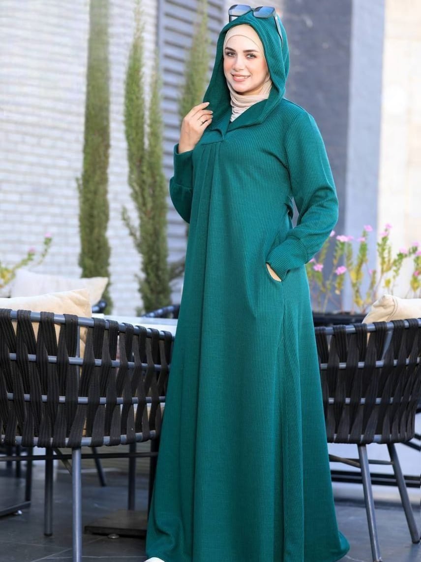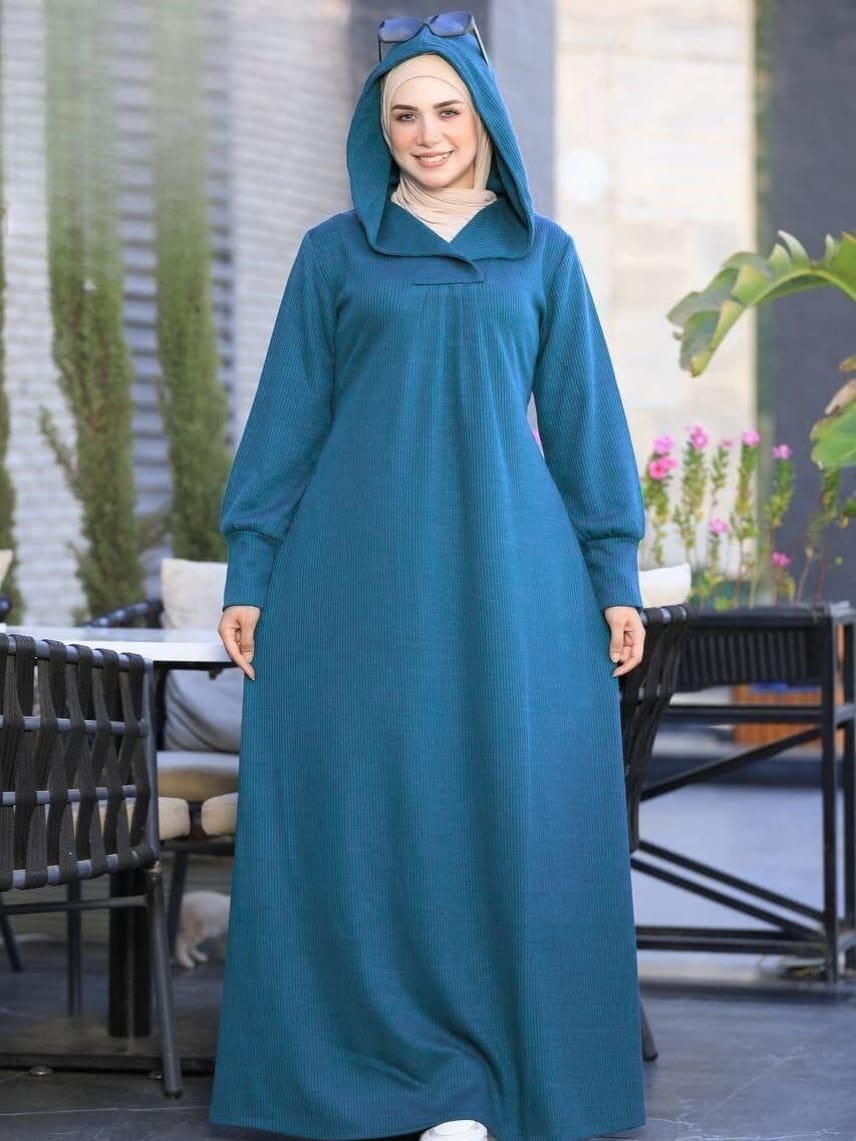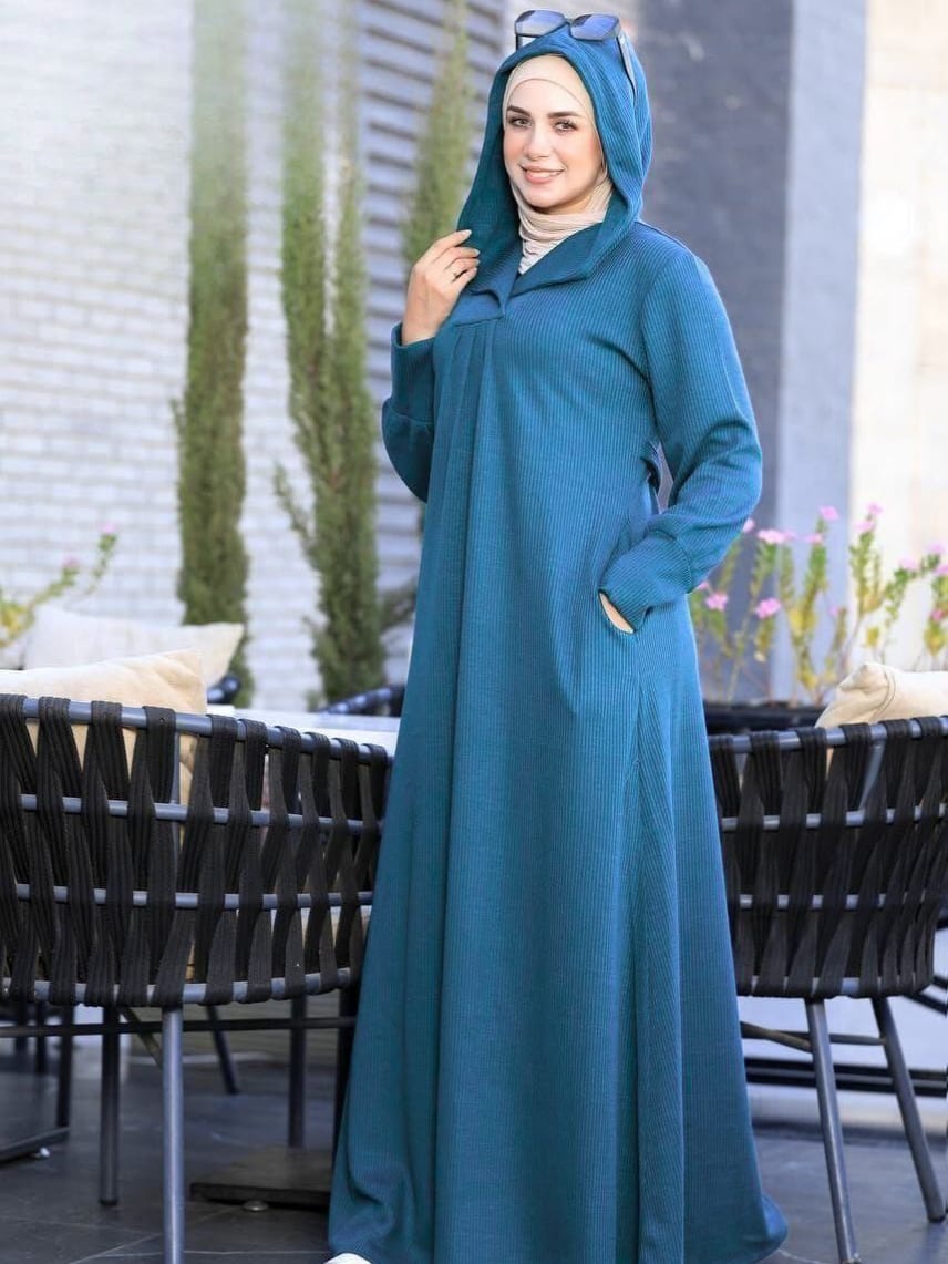 دريس فيروز الريب بكابيشو هو القطعة المثالية التي تلبي الحاجة للدفء دون التضحية بالستايل. روزا بتقدملك تطور فاخر للهودي الكاجوال، حيث يضفي نسيج الريب (المضلع) لمسة من الأناقة الراقية والملمس الغني علي تصميم الدريس المريح. مثالي للانتقال بسلاسة من إطلالة النهار العملية إلى أمسيات الشتاء الأنيقة.