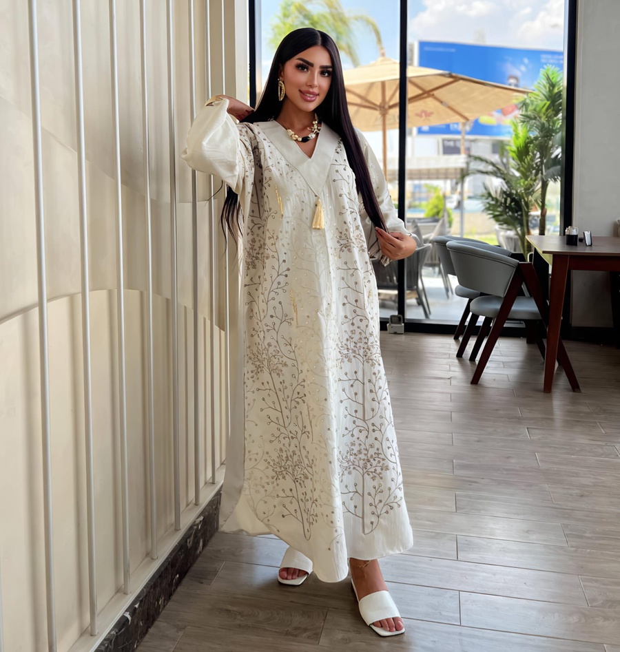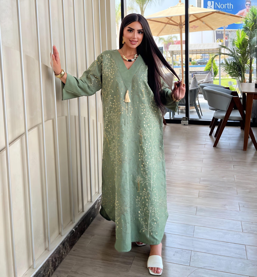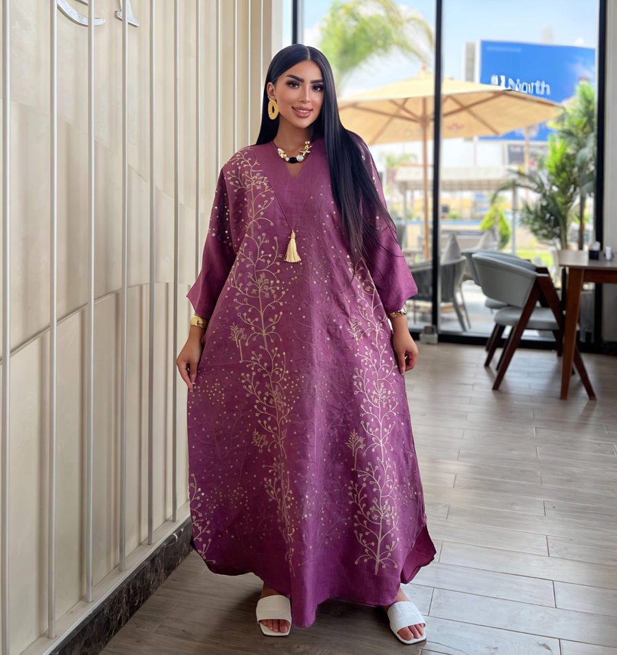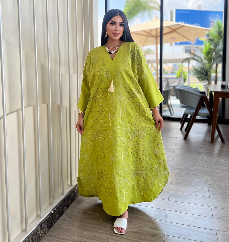 ✨ قفطان كتان مطرز: راحة وشياكة!