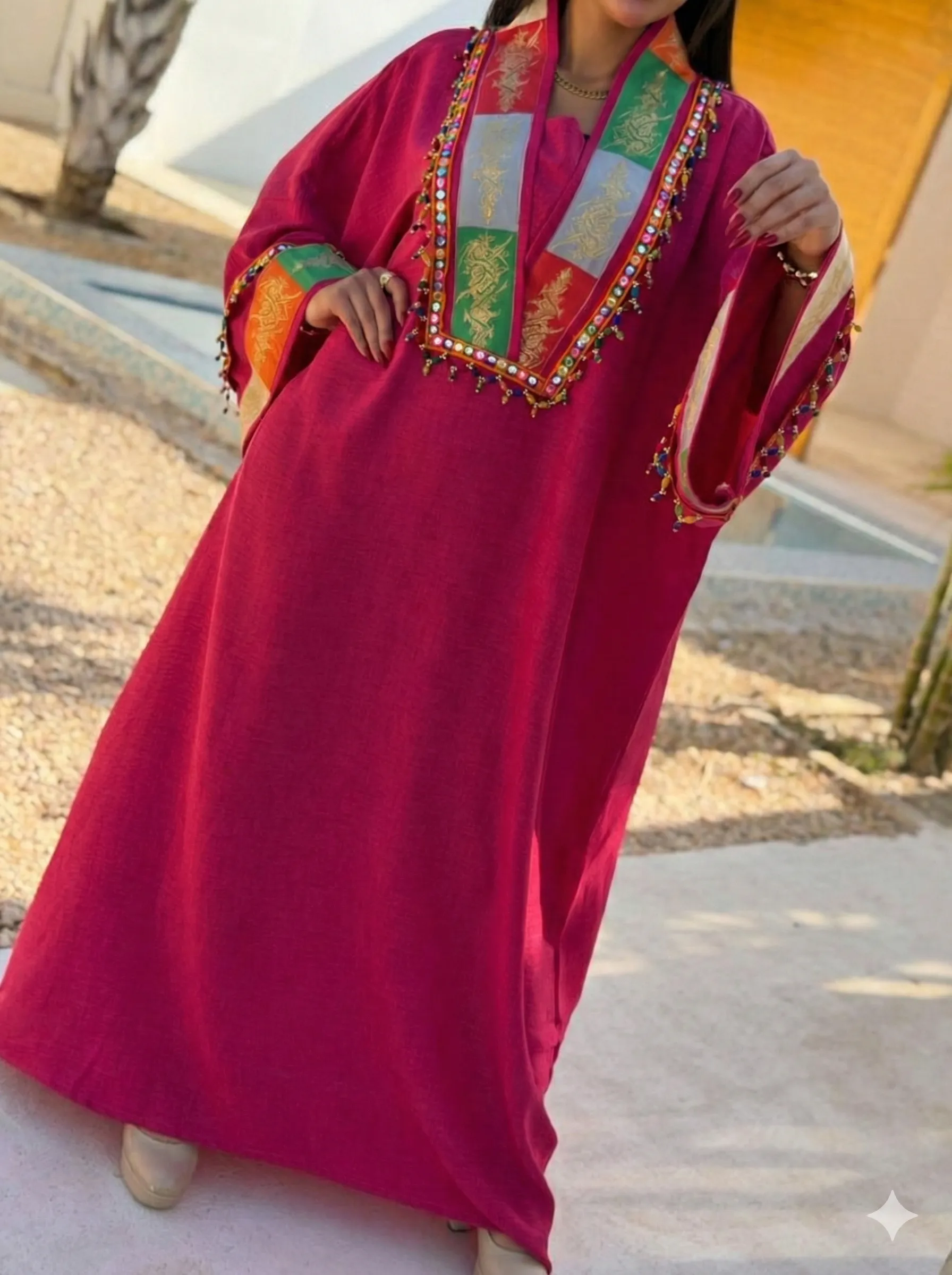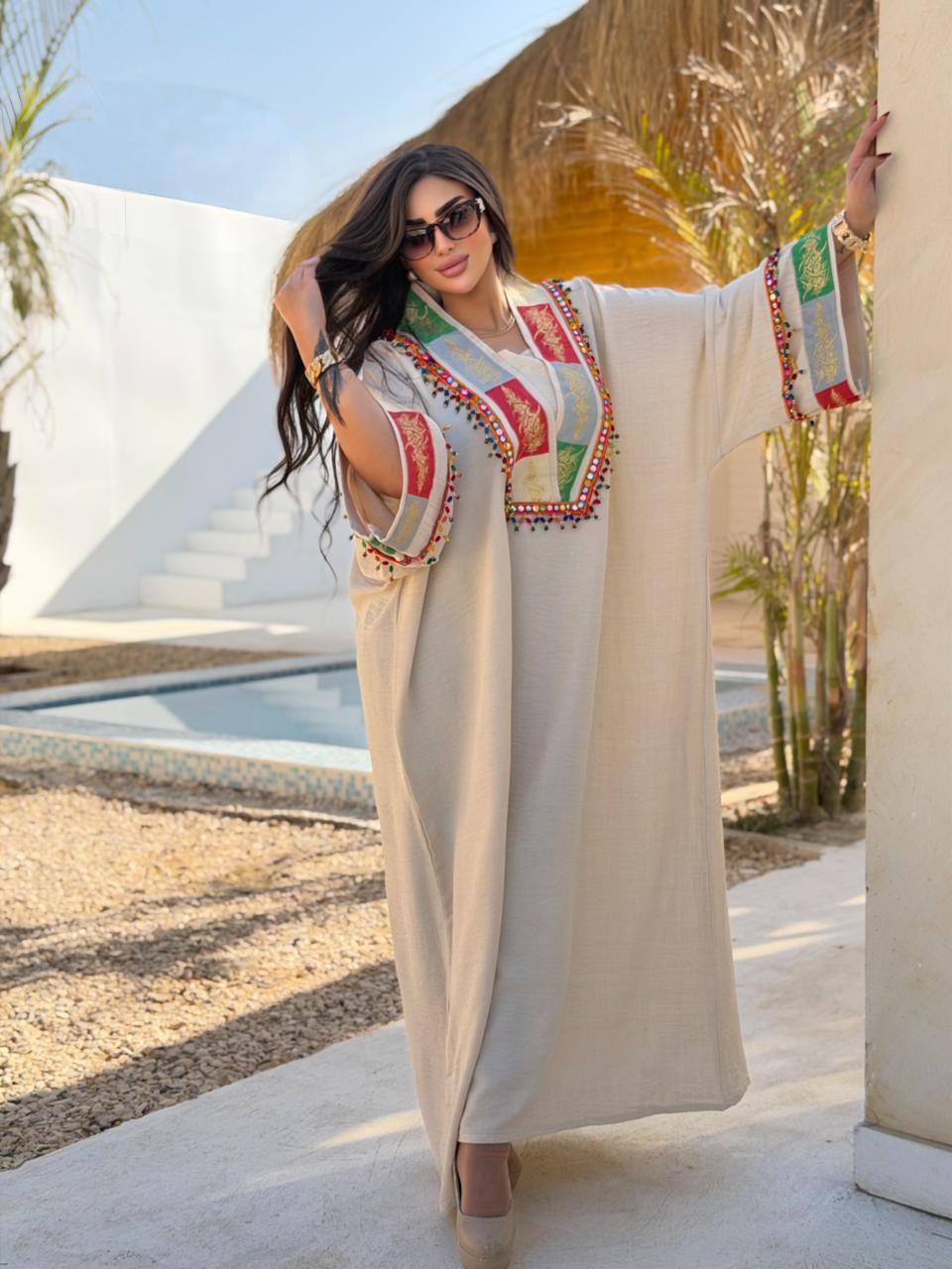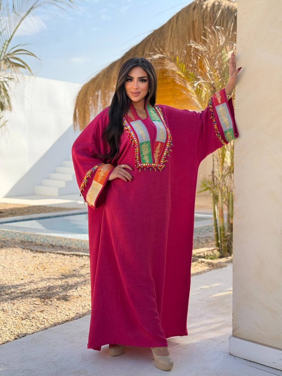 دراعة روزا مصممة بعناية من أجود أنواع الكتان الفرنساوي المعروف بنعومته ومظهره الراقي بـتطريز چكار هندي عالي الجودة يضفي لمسة من الثراء على تصميمك